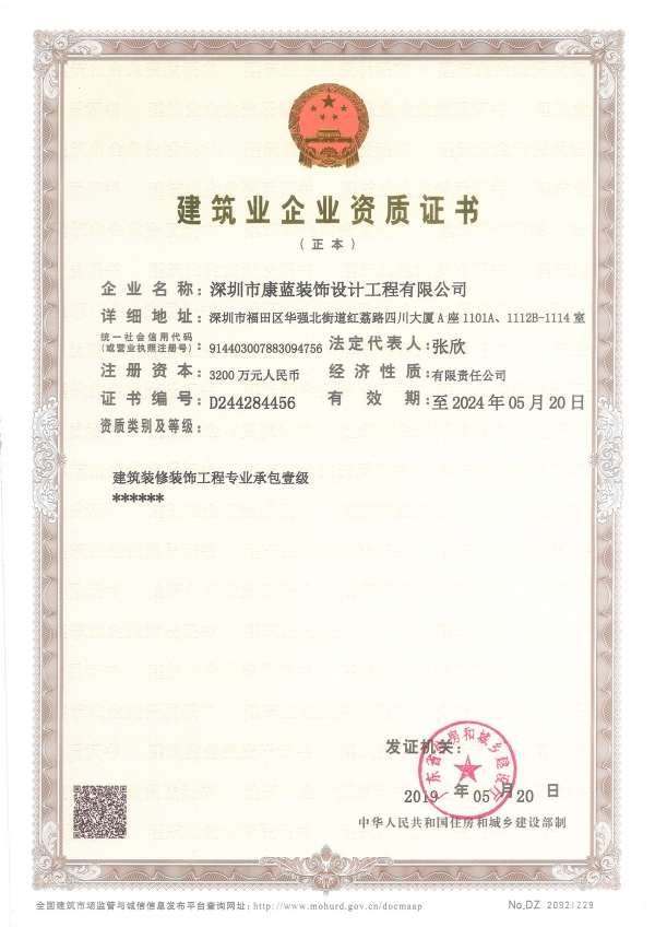 近日,經(jīng)廣東省住房和城鄉(xiāng)建設(shè)廳批準(zhǔn),深圳市康藍(lán)科技建設(shè)集團(tuán)有限公司建筑裝修裝飾工程專業(yè)承包資質(zhì)正式升級為壹級資質(zhì),并新增消防設(shè)施工程專業(yè)承包、電子與智能化工程專業(yè)承包、建筑機電安裝工程專業(yè)承包等資質(zhì)。此次康藍(lán)建設(shè)集團(tuán)資質(zhì)的升級,為公司今后提高市場競爭力、拓展市場提供了有利條件。