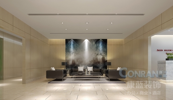 前廳是本次設(shè)計(jì)的重頭戲,康藍(lán)設(shè)計(jì)師在整體的規(guī)劃中大量使用了淺色調(diào)的潔凈材料,如玻璃幕墻、石材、玻化磚等,色彩搭配呈現(xiàn)出清透、雅致、穩(wěn)重、大氣的效果之外,亦表現(xiàn)出一種力度感和效率感。