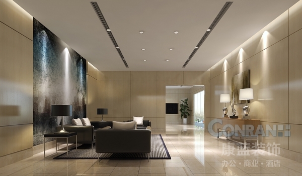 縱觀整個(gè)太平金融大廈辦公室設(shè)計(jì)案例,無(wú)論是哪個(gè)空間,都能看到對(duì)抽象繪畫(huà)藝術(shù)的運(yùn)用。在具象而規(guī)整的建筑設(shè)計(jì)中納入無(wú)論是色彩還是線條都無(wú)邊界性規(guī)則的抽象藝術(shù),是康藍(lán)設(shè)計(jì)一次大膽的嘗試,事實(shí)證明,這是一次成功的嘗試,將裝飾設(shè)計(jì)這一門類升華到藝術(shù)設(shè)計(jì)的高度。